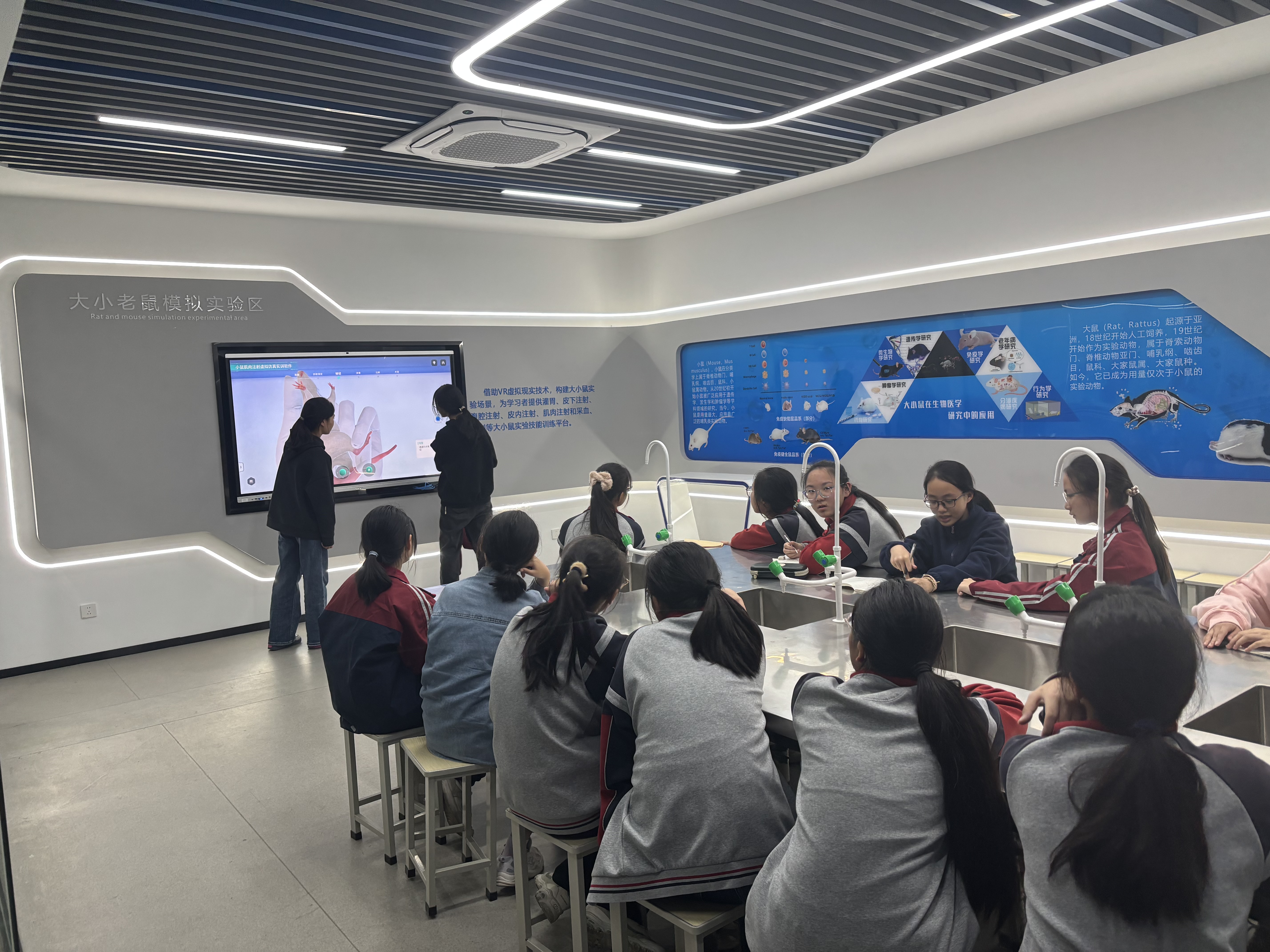 活动现场,同学们依次体验了“生物微观世界探险VR”和“实验动物探秘全息VR”两个主题教学模块。在“生物微观世界探险”阶段,通过虚拟仿真系统生动展示了细胞分裂、组织构成及生物反应的具体过程,以全新方式让大家全面认识生命的奥秘。在“实验动物探秘”过程中,同学们利用全息VR及虚拟仿真技术,感受了大小鼠、比格犬和食蟹猴等实验动物的解剖构造与实验操作流程,了解了科学研究中动物实验的伦理原则与技术规范。