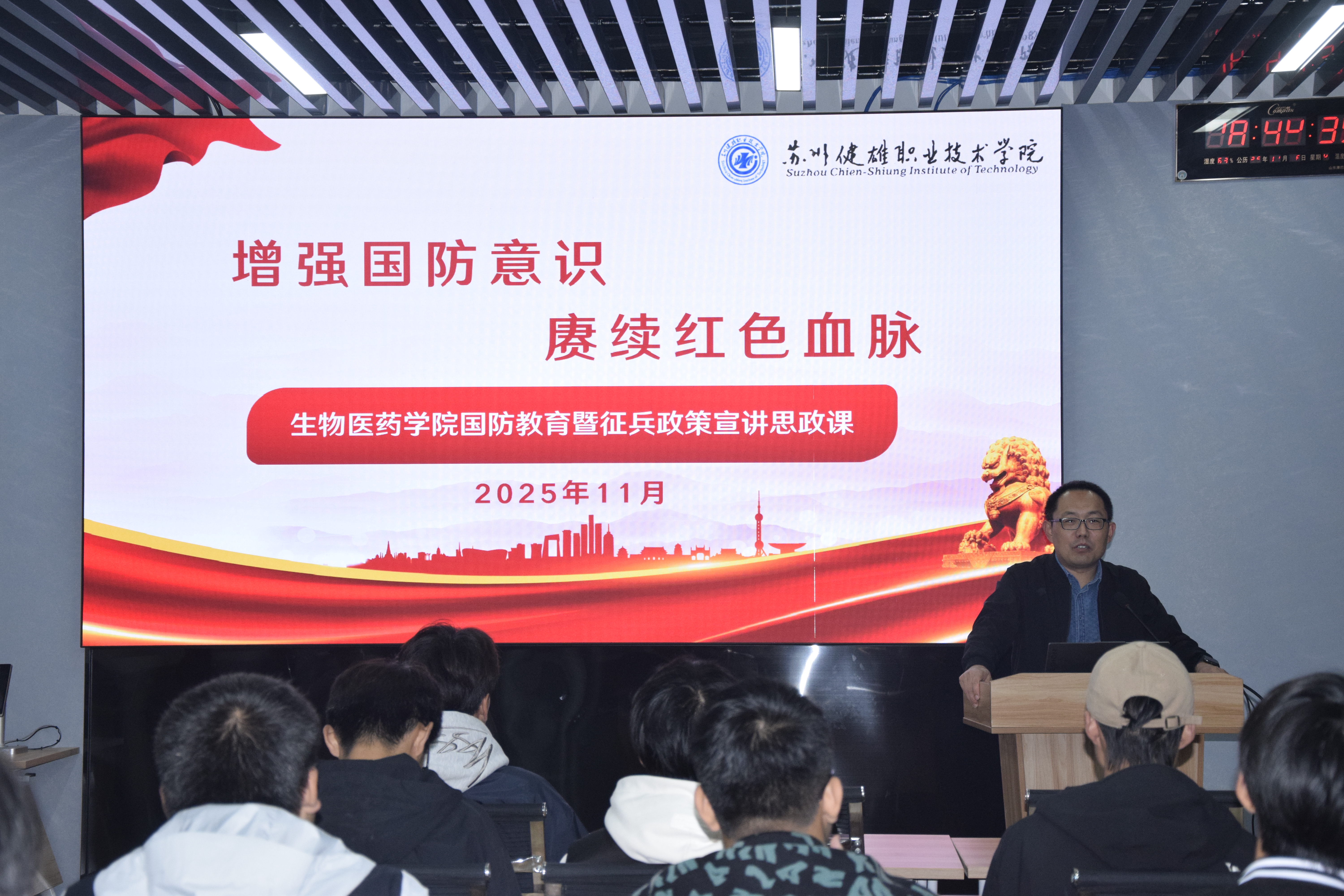 为增强学生国防观念,激发参军报国热情,11月6日,生物医药学院在D3-209开展《增强国防意识 赓续红色血脉》国防教育暨征兵政策宣讲思政课。党总支书记王志明主讲,2024级、2025级学生代表参加活动。