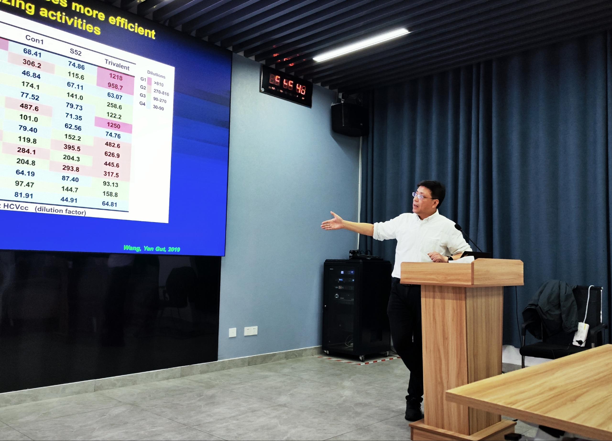 讲座中,钟教授介绍丙肝病毒流行病学研究及治疗预防目标,指出虽已有药物治疗,但攻克疾病仍需疫苗。他分析了疫苗研发难点,分享了实验室在丙肝疫苗研发上的卓越成果,介绍了正在研究的疫苗的保护性、效果及市场前景,为师生们呈现了一场精彩的学术报告。与会人员认真聆听并开展交流。钟教授长期致力于丙型肝炎病毒、埃博拉病毒等重要人类RNA病毒研究,累计发表学术论文110余篇,被引5000余次,在该领域具有深厚学术造诣。