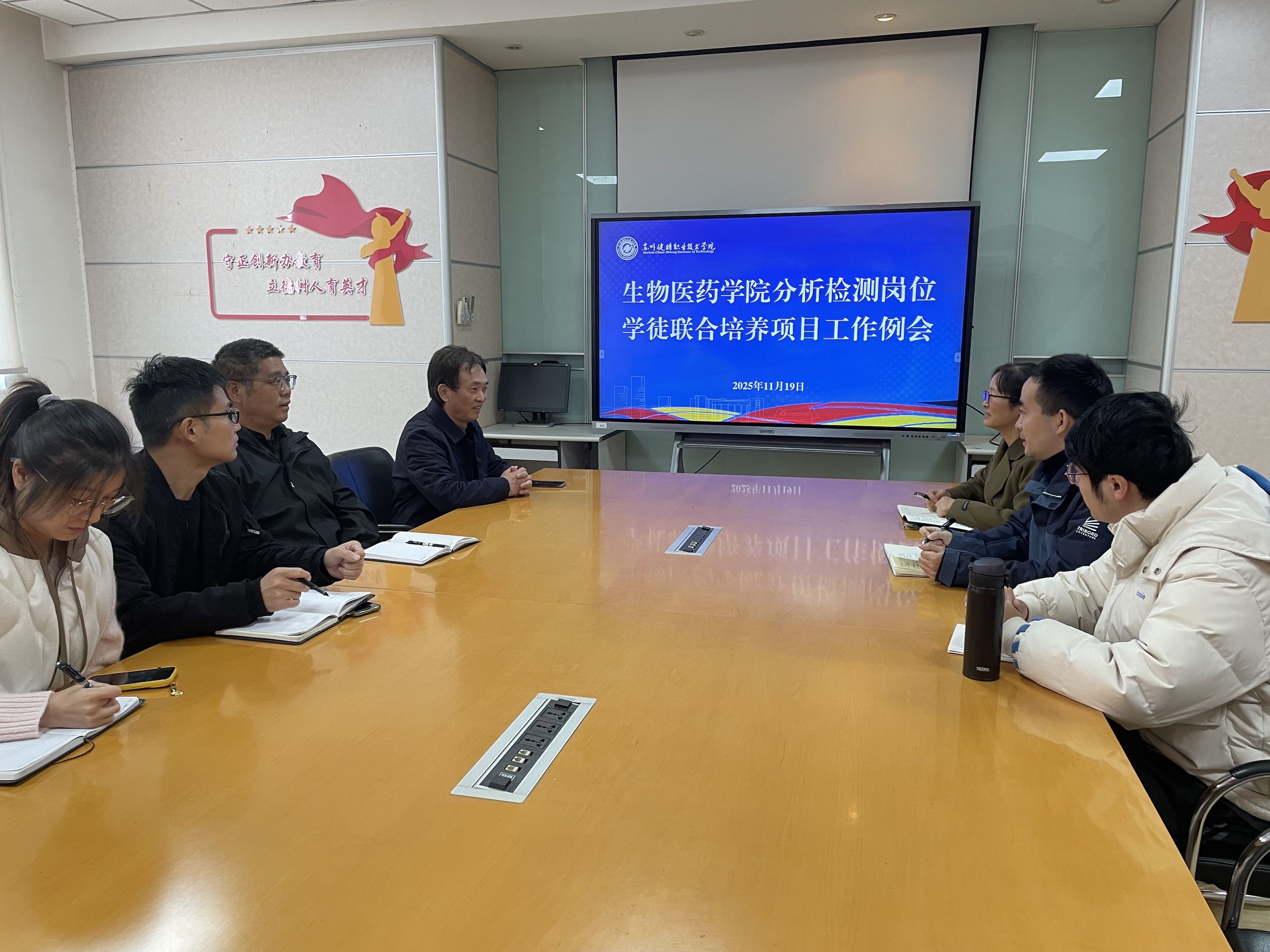 11月19日,生物医药学院组织分析检测岗位学徒联合培养项目核心成员与江苏德普检测技术有限公司体系质量部负责人钱玉根共同开展了月度工作例会,重点就本学期企业兼职教师课程实施情况与下学期企业核心课程的实施计划进行了深入研讨。