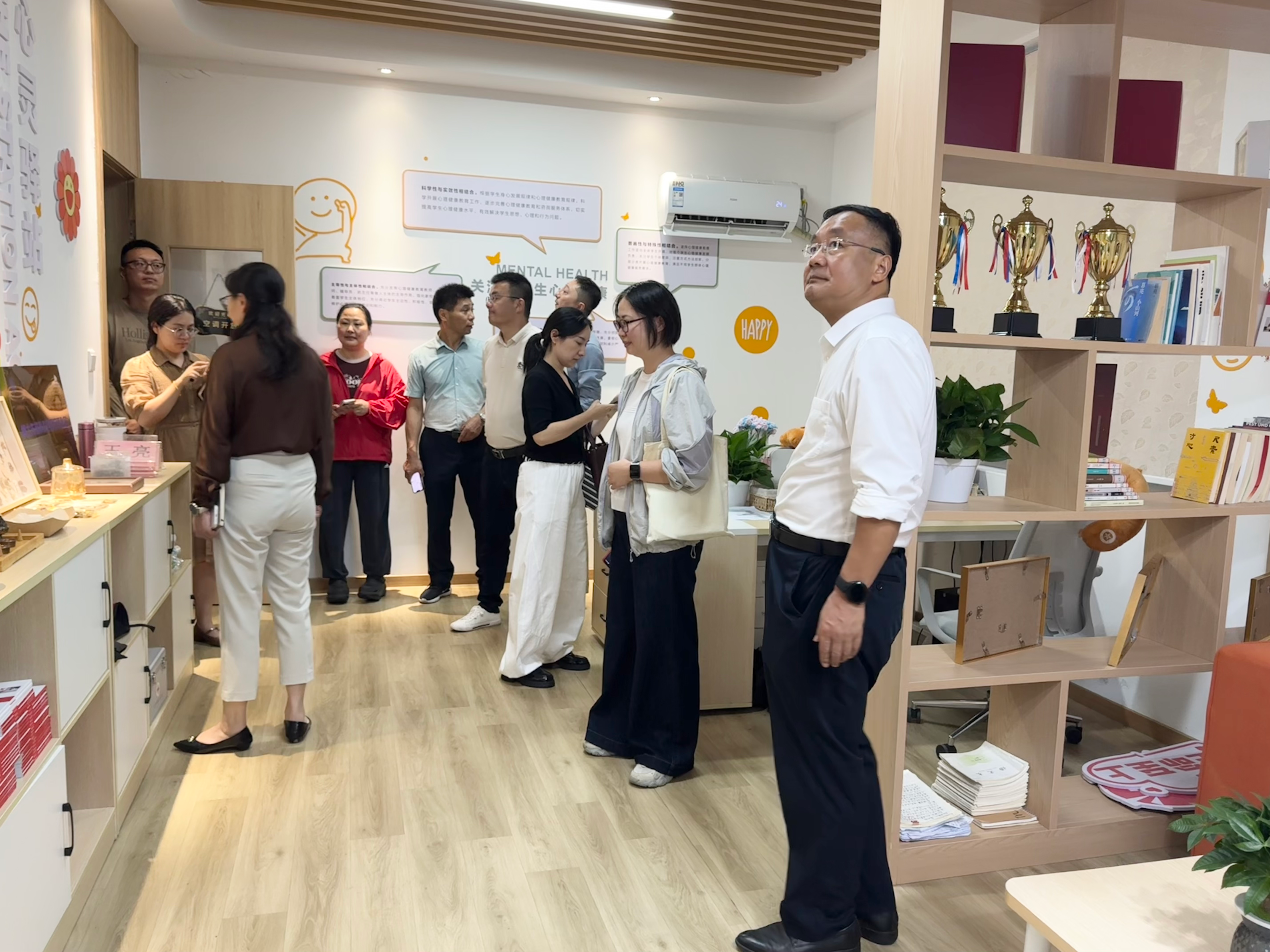 调研过程中,林院长仔细察看了功能分区、活动展示墙及谈心谈话区,深入了解日常运营情况,并听取了学院相关汇报。他对社区在学生服务方面取得的成效给予肯定,强调“一站式”建设要始终围绕“以生为本”这一核心,着力打通学业帮扶、心理疏导和生活服务的“最后一公里”,切实增强学生的归属感和获得感。