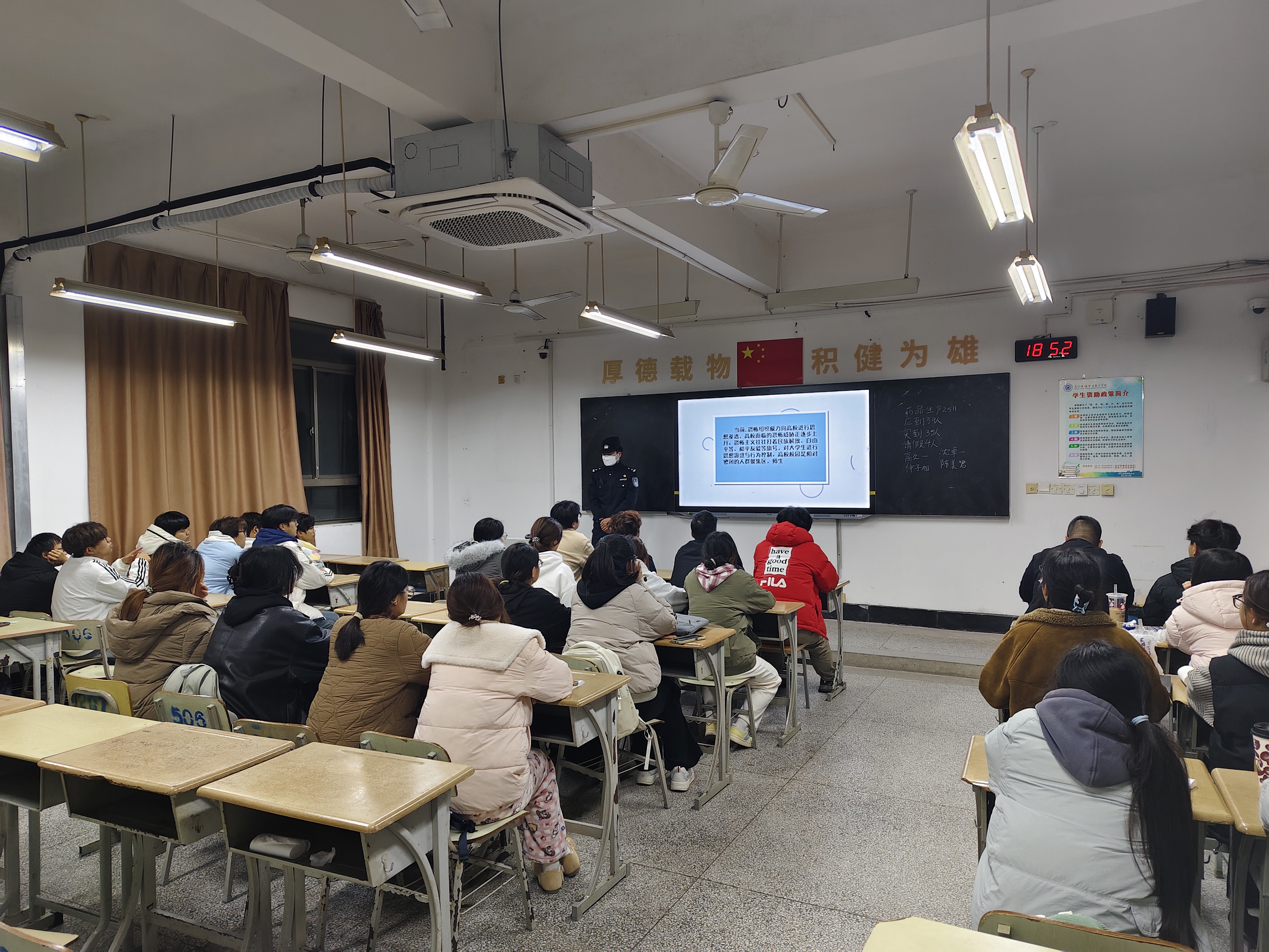 活动伊始,科教新城派出所警官以专业视角,系统解读当前社会及高校潜在的威胁隐患,引导同学们认清生活中可能渗透不良思想的各类载体,强化风险预判能力。随后,针对潜在突发反恐防暴场景,警官详细传授“不盲目反抗、服从指令、隐蔽避险、机智求救”等应急处置方法,助力同学们提升自我保护与财产安全防护能力。最后,警官呼吁大家学会辨别恶意信息,理性看待宗教相关内容,坚守网络与思想安全底线。