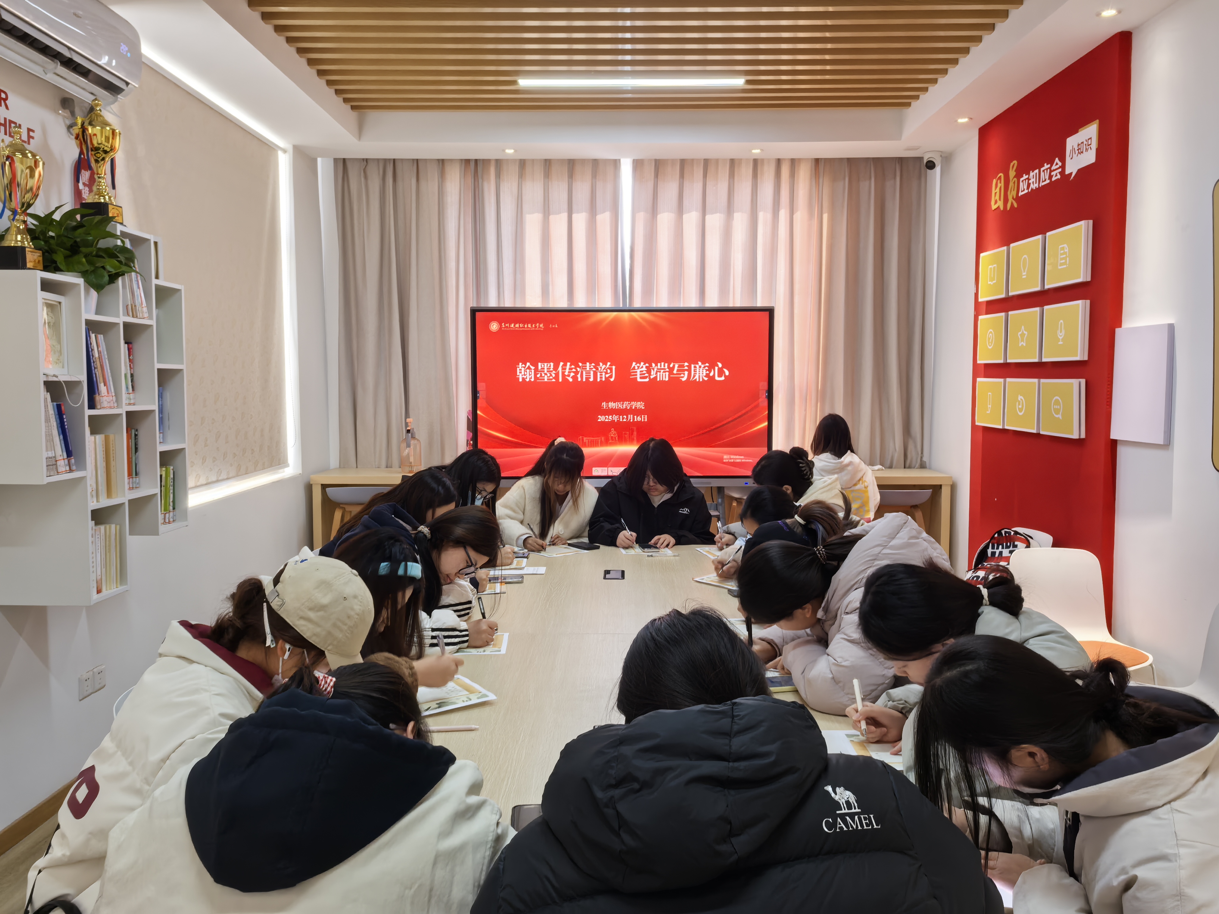 为弘扬中华优秀传统文化,涵养校园清风正气,12月16日,生物医药学院在一站式学生社区举办了“翰墨传清韵 笔端写廉心”廉洁主题硬笔书法活动。