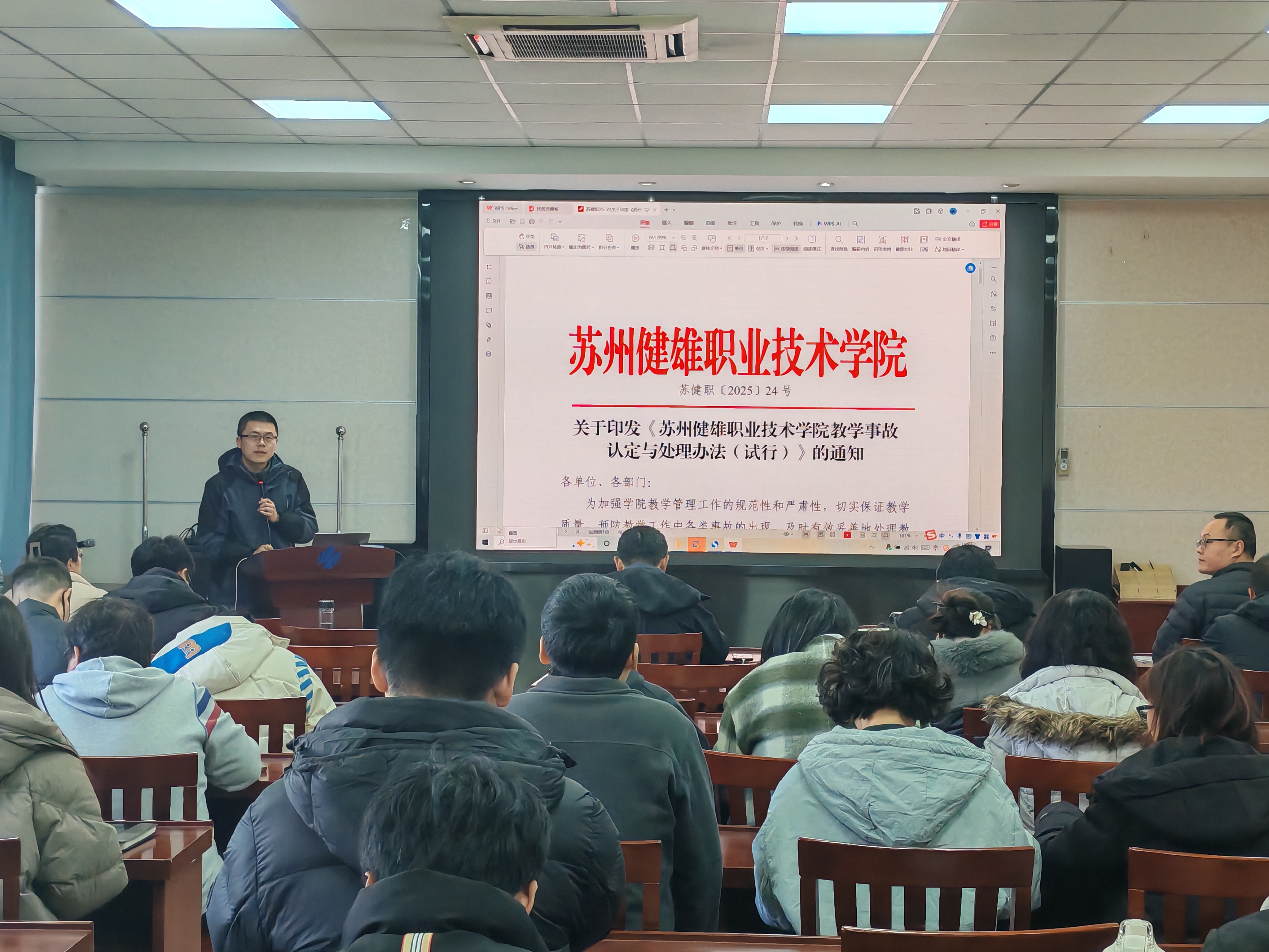 为认真落实学校教学管理规范化要求,进一步增强教师责任意识,保障教学质量,近日,生物医药学院召开全体教职工专题学习会,集中学习《苏州健雄职业技术学院教学事故认定与处理办法(试行)》相关内容。