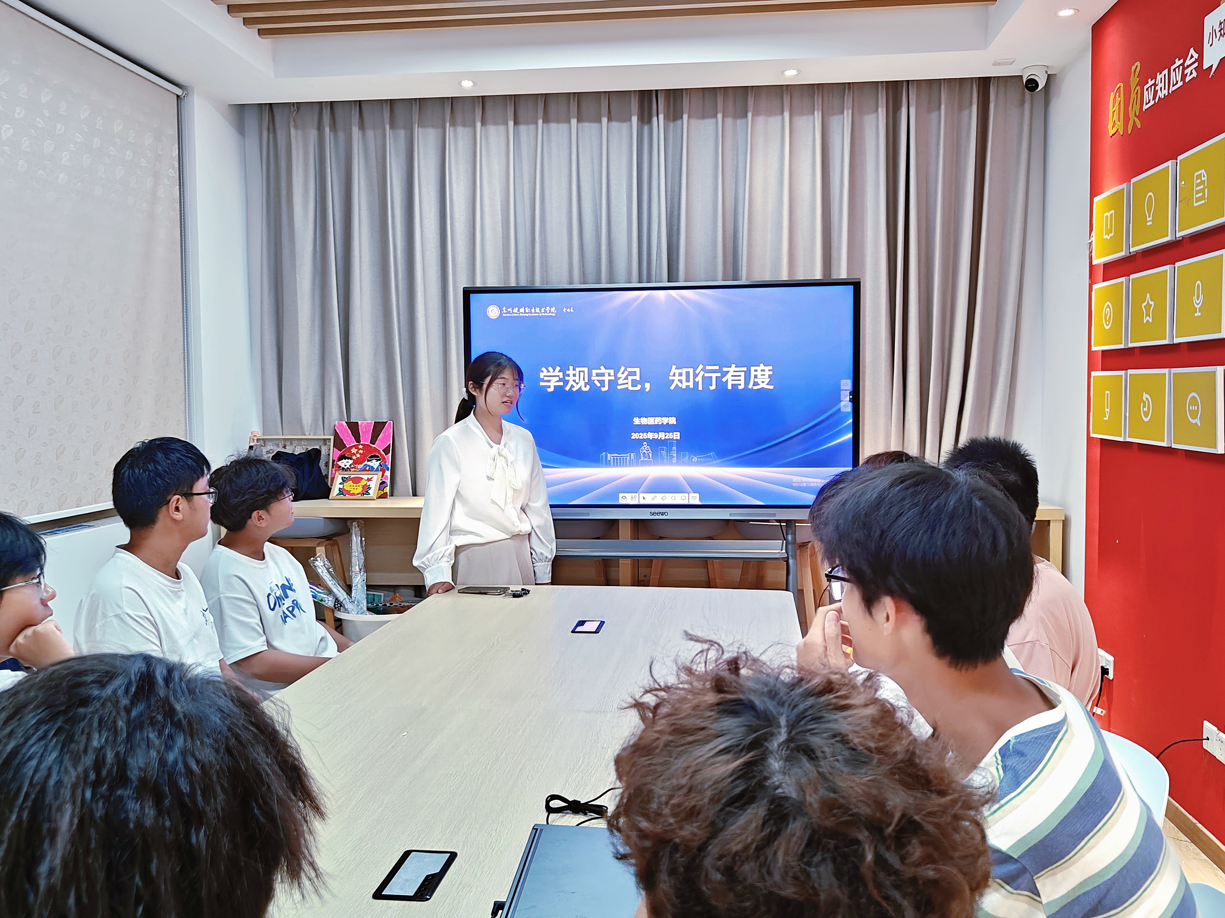 为引导新生尽快适应大学环境,筑牢规矩意识,生物医药学院于9月25日在“一站式”学生社区开展了“学规守纪,知行有度”《学生手册》集体学习活动。