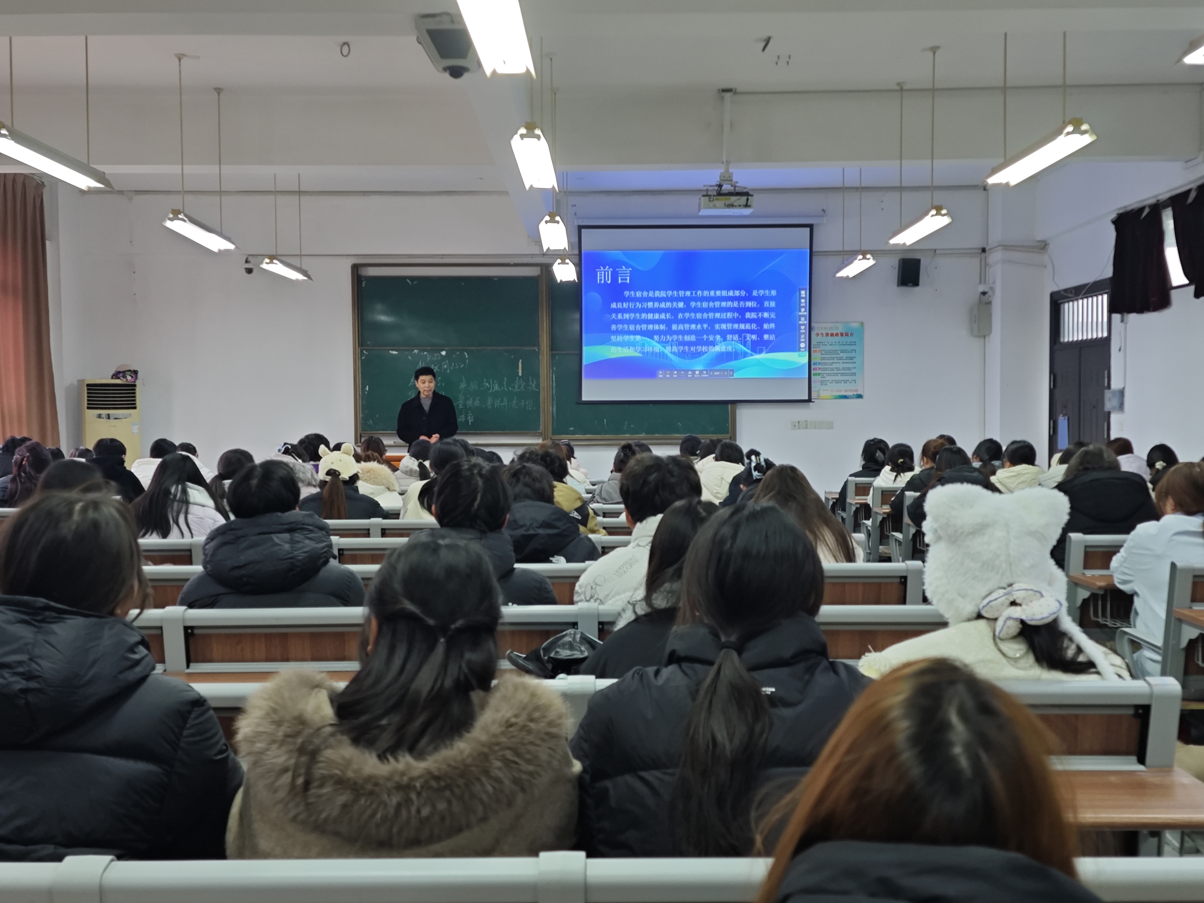 为进一步规范宿舍管理,强化学生安全意识,营造舒适、安全的宿舍居住环境,12月24日,生物医药学院在C3教学楼举办“宿舍长安全知识培训会”,会议重点围绕宿舍安全、卫生管理及日常制度等内容进行讲解,为学生宿舍生活保驾护航。