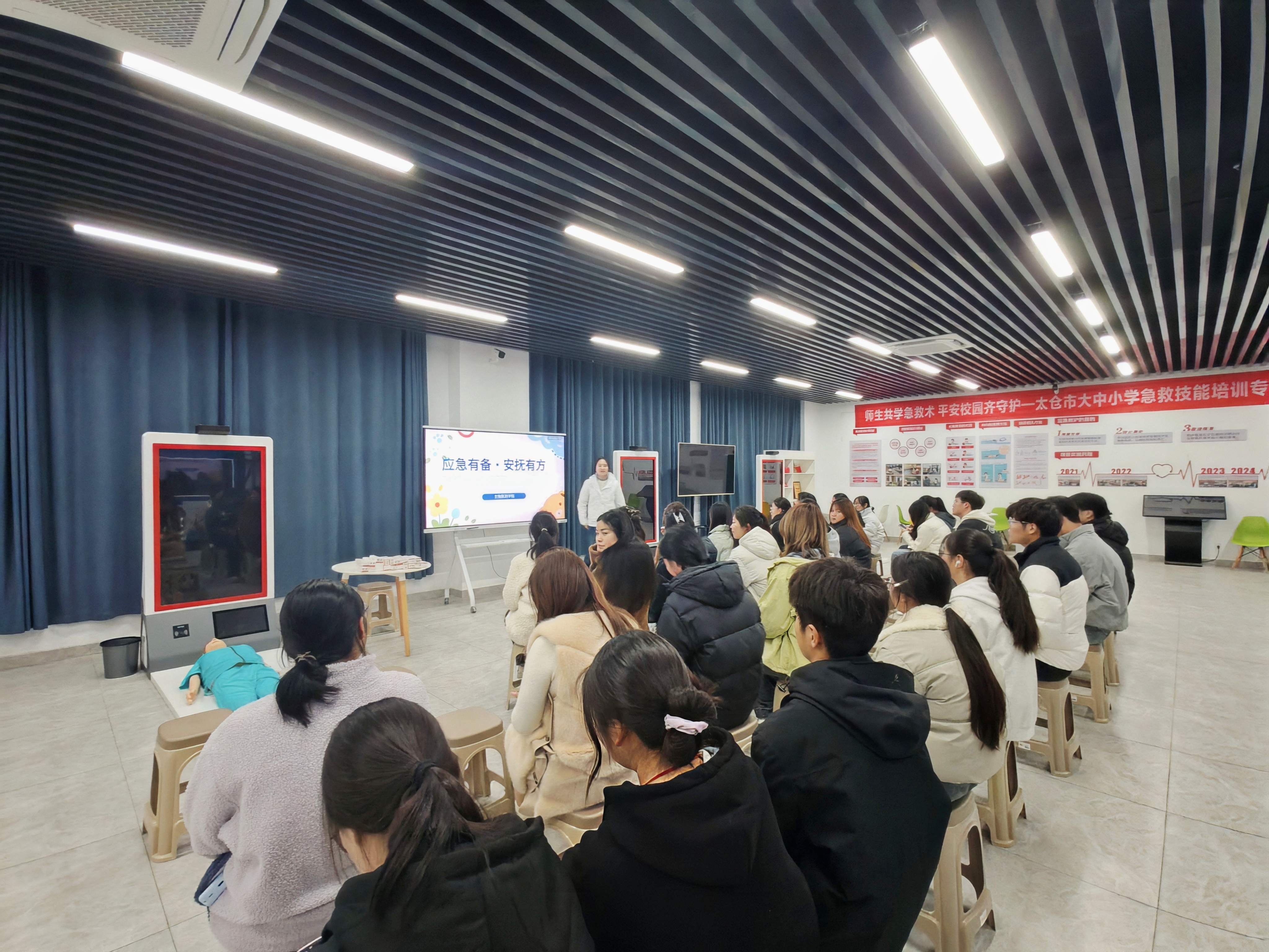 培训伊始,心理辅导员明确培训核心与意义,强化心理委员责任担当。结合学院实验室、宿舍特点,授课老师重点讲解实验室和宿舍发生突发事件后初期处置方法,并现场指导实操,助力心理委员掌握应急技能。随后,心理辅导员围绕突发事件后学生心理疏导授课,结合校园案例,指导心理委员掌握情绪安抚、共情倾听等科学方法,确保其能快速响应、科学处置。
