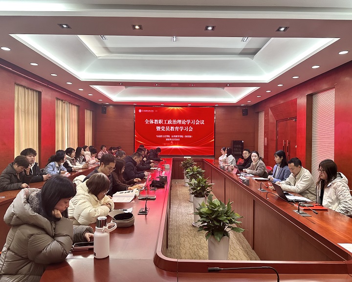 2025年12月24日下午,马克思主义学院 公共教学学院(体育部)在吴园第一会议室召开全体教职工政治理论学习暨党员教育大会。会议由学院党总支书记周丽雅主持,学院全体教职工参加会议。