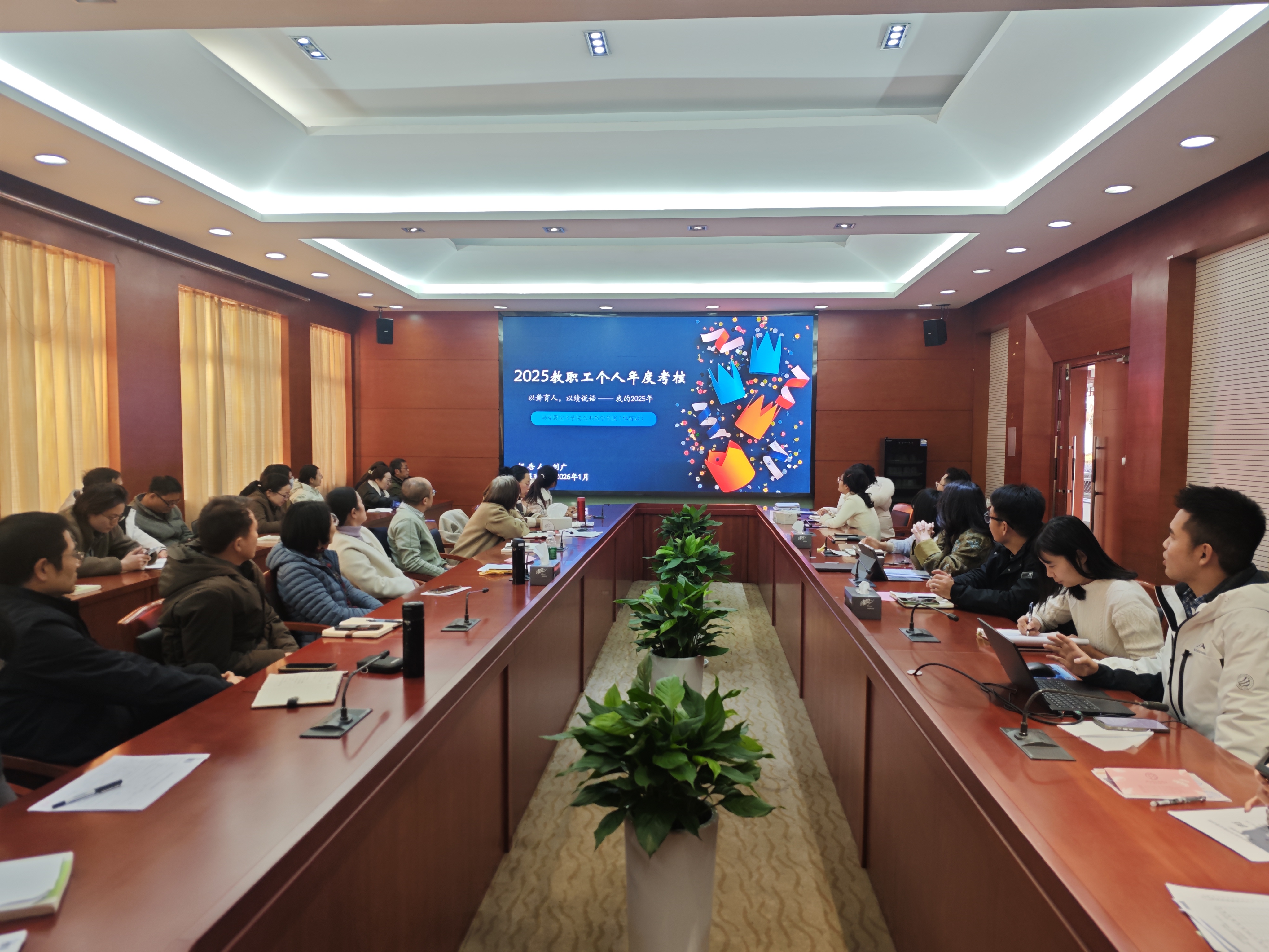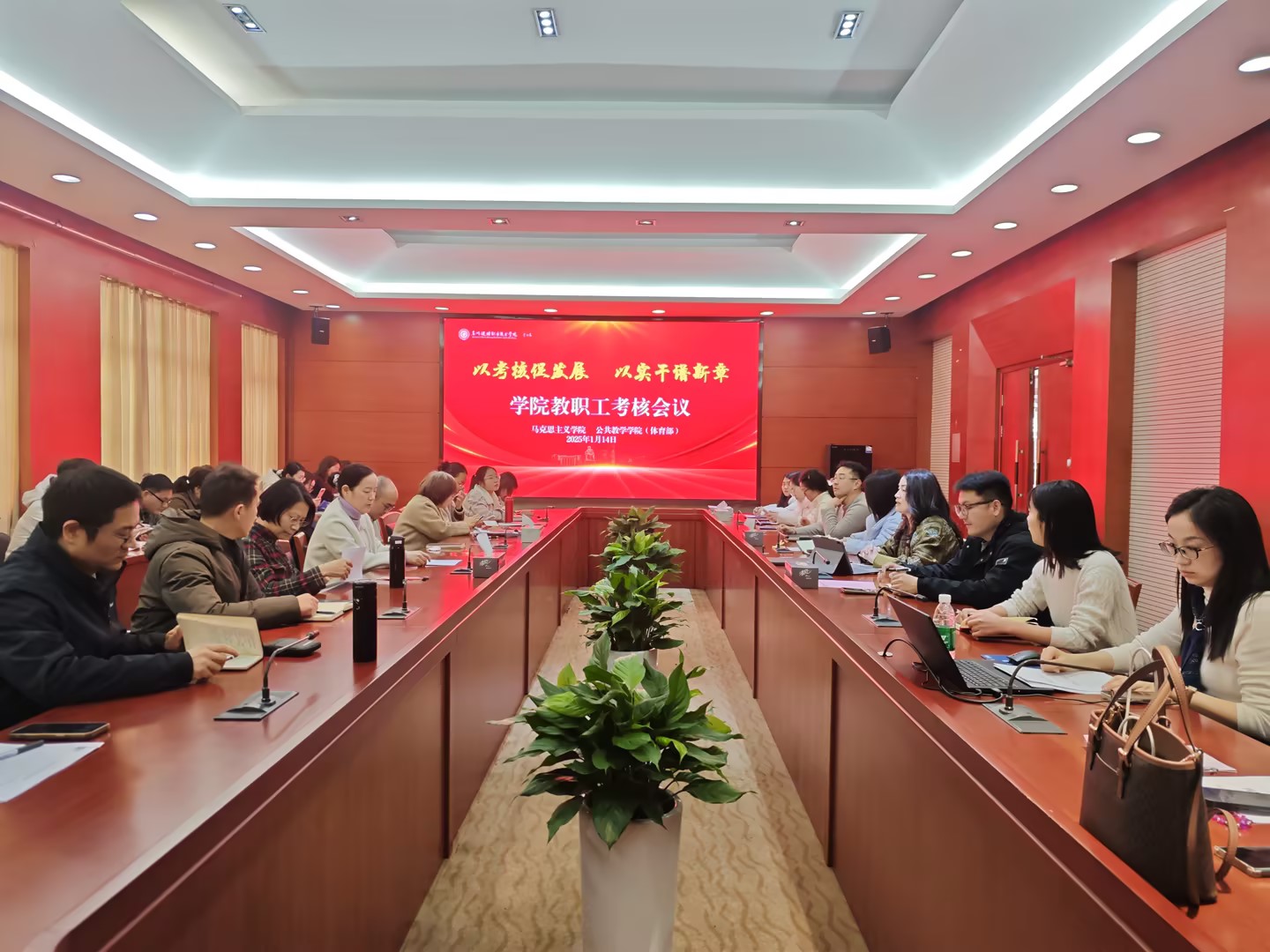 2026年1月14日下午,马克思主义学院公共教学学院(体育部)召开期末全体教职工会议。会议旨在系统总结过往工作,全面谋划新篇,围绕立德树人根本任务,凝聚发展共识,明确将深化教育教学改革、激发队伍活力作为推动学院高质量发展的核心动力,为2026年工作擘画清晰路径。